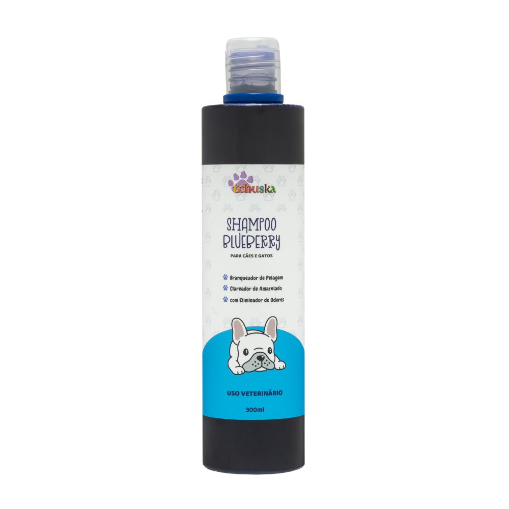 O Shampoo Blueberry Tchuska possui uma fragrância marcante frutal doce, com pigmentação especial para branqueamento e clareamento de tons amarelados na pelagem, proporcionando sensação de limpeza e frescor com perfume marcante. Pode ser usado com frequência no banho dos pets, eliminando odores.